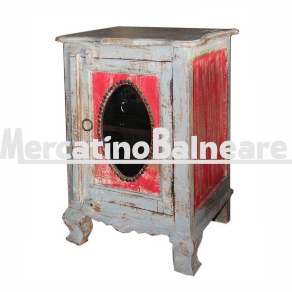 Indietro a Comodino in legno di recupero barche con vetro sull’anta
