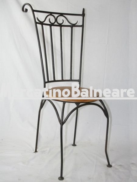 Indietro a Sedia in ferro battuto e seduta in legno di Sheesham