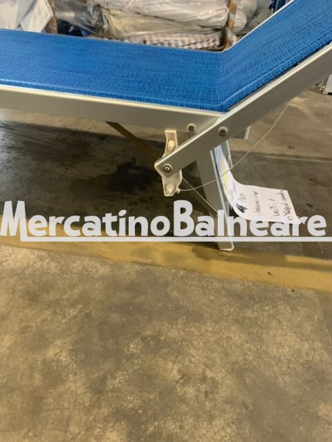LETTINO USATO 2 POSIZIONI CON TELA BUONA BLU MELANGE TRAFORATA E SCRITTA SU PARASOLE