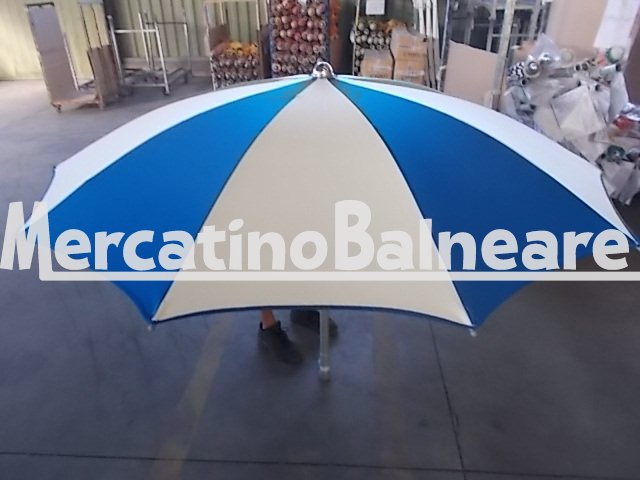 CEZANNE NUOVO PRONTA CONSEGNA 100% NOSTRA PRODUZIONE RICAMBI SEMPRE DISPONIBILI STRUTTURA DIAMANTE SALVA MANO 10 STECCHE DA CM. 110  PER UN DIAMETRO DI METRI 2,2 POMOLO INOX PALO IN ALLUMINIO 40/40 CON FERMO SCIROCCO TESSUTO TEMPOTEST A SPICCHI ALTERNATI BLU 13 E PANNA 93/15 CON BORDINO BLU 13 PREZZO IVA ESCLUSA PARTE INFERIORE ESCLUSA Escluso trasporto ed eventuali parti inferiori. Vendibili singolarmente