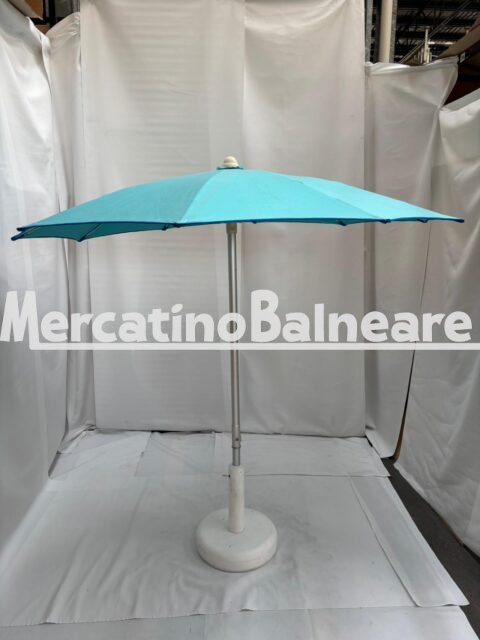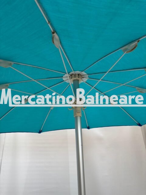 CEZANNE USATO STRUTTURA MODELLO PLATINO  TIPO NUOVO CON PULSANTE SALVA DITO 10 STECCHE DA CM 100 PER UN DIAMETRO DI CIRCA 2 METRI LE STECCHE SONO LIVEMENTE OSSIDATE MA BIANCO SU BIANCO APPENA PERCETTIBILE E PERFETTAMENTE FUNZIONALI DOTATO DI APPENDIABITI PALO IN ALLUMINIO ANODIZZATO CON INNESTO 40 E SISTEMA ANTIVENTO MODELLO LEVANTE FISSAGGIO DEL TESSUTO ALLA STECCA TRAMITE TASCA TASCA DI COLORE BLU COSI’ COME IL BORDINO BLU 13 TESSUTO TEMPOTESTO 22 TINTA UNITO CELESTE DISCRETO COME COLORAZIONE E FUNZIONALE SENZA RAMMENDI BEN TENUTO CUCITURE DISCRETE SENZA MANTOVANA  IL PREZZO NON INCLUDE LA PARTE SOTTO DA DEFINIRE IL PREZZO NON INCLUDE IVA E TRASPORTO GRADIREMO VENDERE TUTTA LA PARTITA INTERA PER RICHIESTE DI QUANTITA INFERIORI CI RISERVIAMO DI VALUTARLE Vendibili singolarmente Prezzo franco fabbrica escluso della parte inferiore