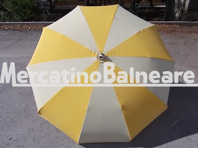 OMBRELLONE KLEE USATO PRONTA CONSEGNA 100% NOSTRA PRODUZIONE RICAMBI SEMPRE DISPONIBILI MODELLO RAGNO ORO TUTTI CON POMOLO ALLUMINIO  A 10 STECCHE CURVE  INTERCAMBIABILI DA 110 CM PER UN DIAMETRO DI CIRCA 2 METRI  LE STECCHE SONO PERFETTAMENTE FUNZIONALI MA OSSIDATE IL PALO ALLUMINIO PERFETTO CON INNESTO 38  DOTATI DI APPENDIABITI IN LEGA  DI SERIE IL TESSUTO TEMPOTEST GIALLO A SPICCHI ALTERNATI CON TEMPOTEST ECRU  SI PRESENTA ANCORA PERFETTAMENTE FUNZIONALE E BEN COLORATO  IL PREZZO è RELATIVO A CADAUNO OMBRELLONE (ACQUISTABILI ANCHE SINGOLARMENTE)  ESCLUSA LA PARTE SOTTO DA DEFINIRE ESCLUSO TRASPORTO E IVA  Vendibili singolarmente Prezzo franco fabbrica escluso della parte inferiore