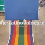 LETTINI ALLUMINIO USATI A 2 POSIZIONI, CON STAFFE, TELA BAIADERA CON SCRITTA, PARASOLE UNITO BLU DISCRETO STATO Trasporto escluso