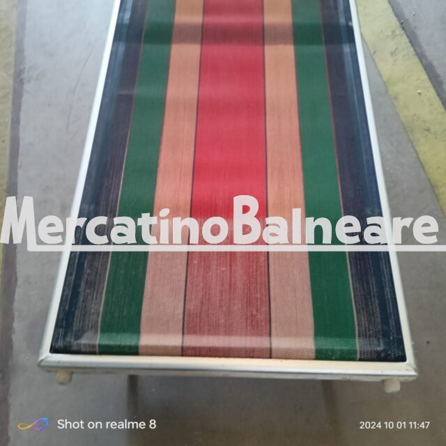 LETTINI ALLUMINIO ZOFFOLI A 3 POS, CON COMPASSI, TELA BAIADERA ROSSO CENTRALE CON SCRITTA E PARASOLE VERDE POCO BELLI Trasporto escluso