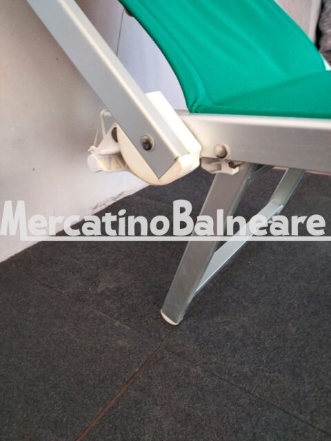 LETTINO USATO IN ALLUMINIO A 4 POSIZIONI. TELAIO SENZA COMPASSI IN BUONO STATO. TELA DI COLORE VERDE IN BUONO STATO CON SCRITTE MISTE “DA NINO”, “ALMAFUERTE” E TETTO DI COLORE ARANCIO SEMPRE IN BUONO STATO. Il prezzo s’intende per l’acquisto dell’intera partita (I.V.A. ESCLUSA). Per l’acquisto di singole unità, si prega di richiedere preventivo. Trasporto escluso
