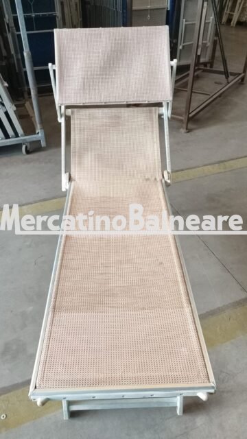 LETTINI ALLUMINIO MODELLO SENZA CORDELLINI, SENZA COMPASSI, TELA LINGUINA ECRU’/ROSSA E PARASOLE IN TINTA Trasporto escluso