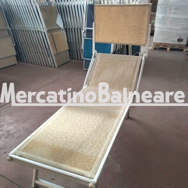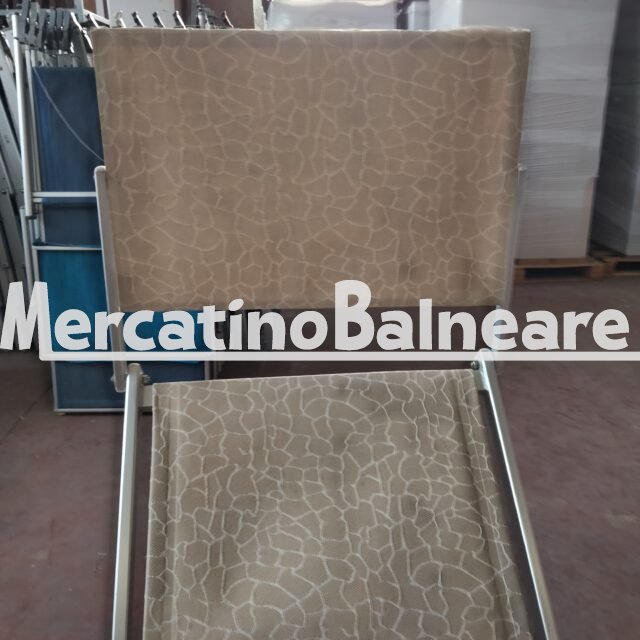 LETTINI IN ALLUMINIO USATI CON TELAIO MOD. 601 IN BUONE CONDIZIONI. N. 36 A 2 POSIZIONI E N. 14 A 3 POSIZIONI. TUTTI ITELAI HANNO I COMPASSI. TELA CON TRAMA ANIMALIER TWIGA SWAHILI SAND IN CONDIZIONI SUFFICIENTI CON AMCCHINE COME DA FOTO. Il prezzo s’intende I.V.A esclusa Il prezzo è per l’intera partita. Per l’acquisto di quantitativi inferiori, si prega di richiedere preventivo. Trasporto escluso