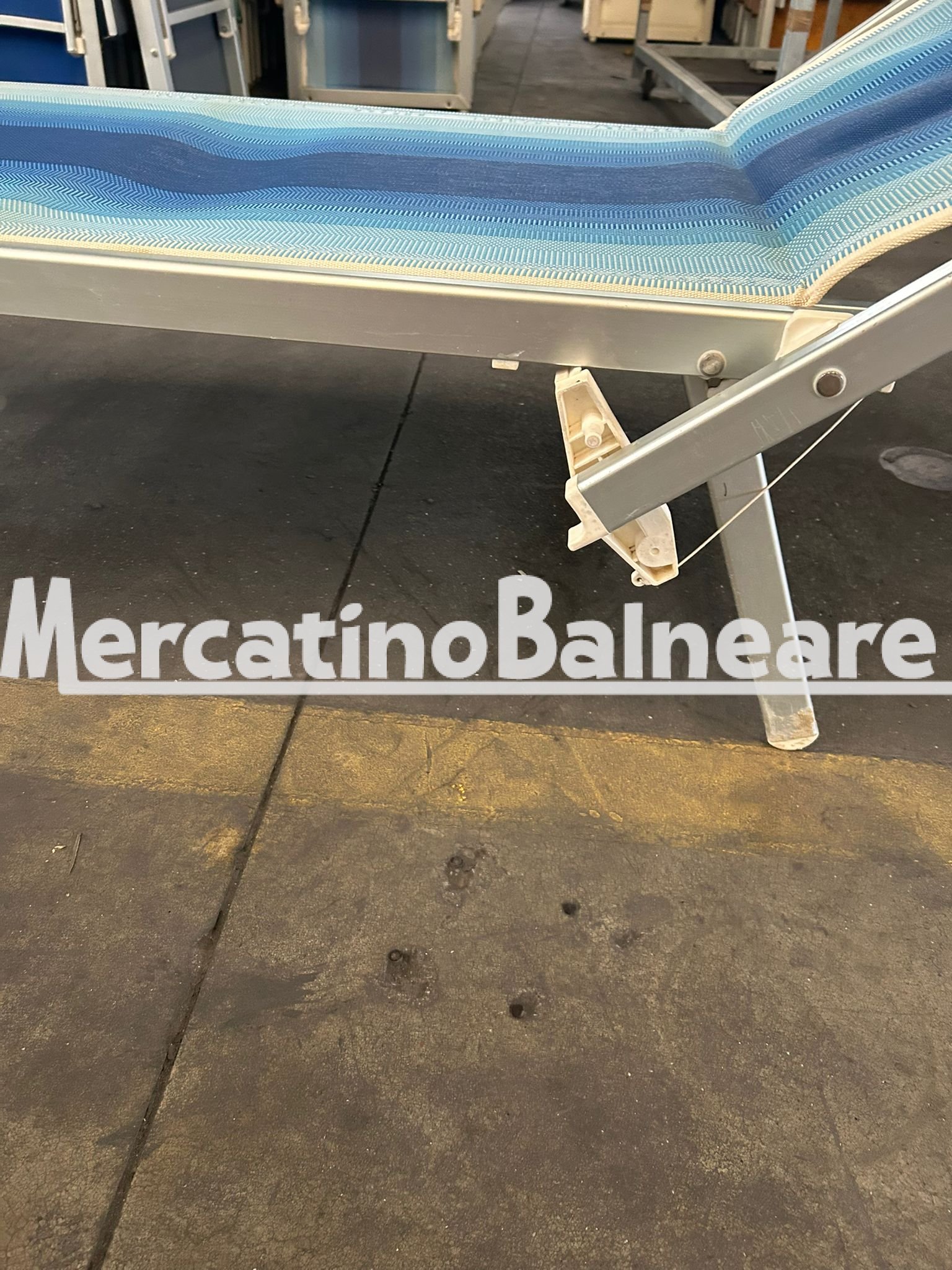Indietro a LETTINO 601 RELAX SENZA STAFFE USATO SFUMATO BLU BIANCO SCRITTA LIDO AL SABBIONE