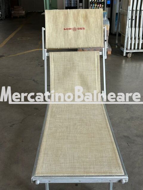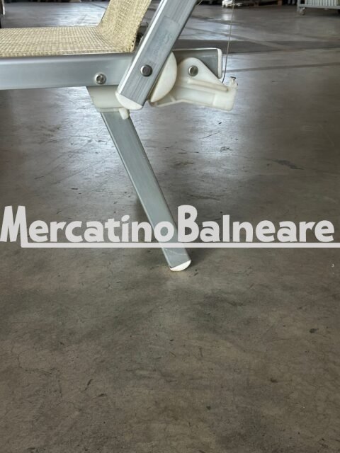 LETTINI IN ALLUMINIO USATO TELAIO CON NUOVO SISTEMA DI BLOCCAGGIO GAMBE SENZA STAFFE SCHIENALE REGOLABILE A TRE POSIZIONI TELAIO DISCRETO E PERFETTAMENTE FUNZIONALE TELA TWM 0155 TWISTSAND A RETE  TENUTA BENE  BELLA TETTINO ABBINATO ECRU MELANGE CON LOGO BAGNO VENETO IL PREZZO PER CADAUNO LETTINO  ESCLUSO IVA ESCLUSO IL TRASPORTO PREFERIAMO LA VENDITA DI TUTTA LA PARTITA INTERA PER RICHIESTE PARZIALI CI RISERVIAMO DI VALUTARLE Trasporto escluso
