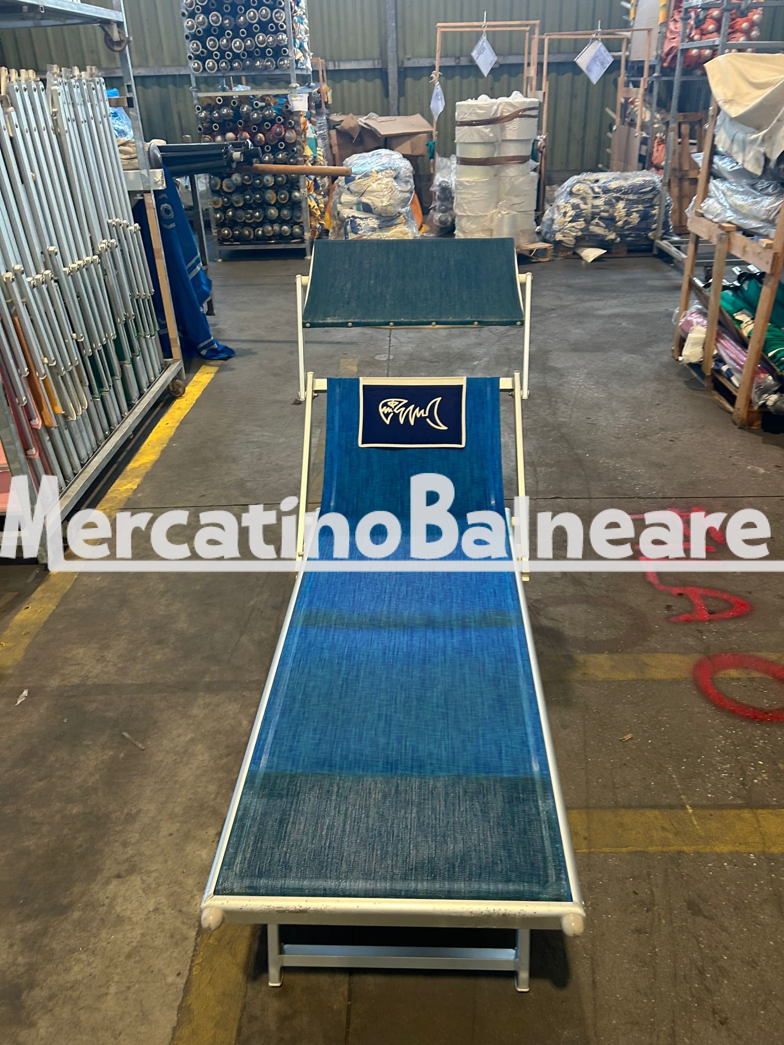 Indietro a LETTINO ALLUMINIO USATO 501 RELAX SENZA STAFFE TELA BLU MELANGE PIENA CON CUSCINO LOGATO TETTINO ABBINATO