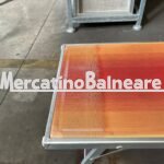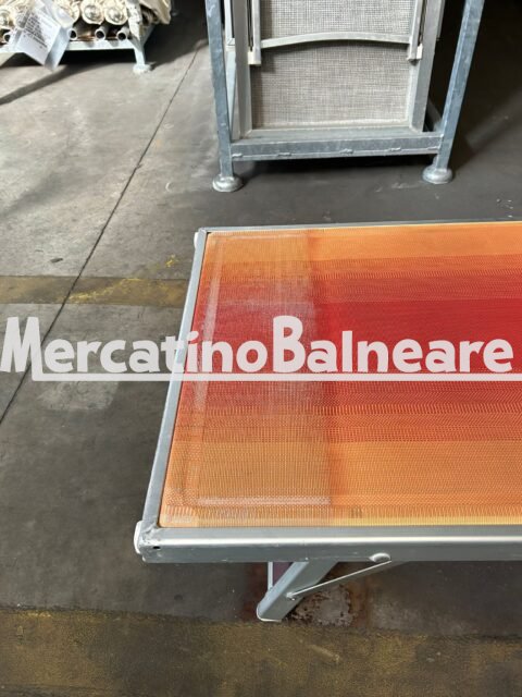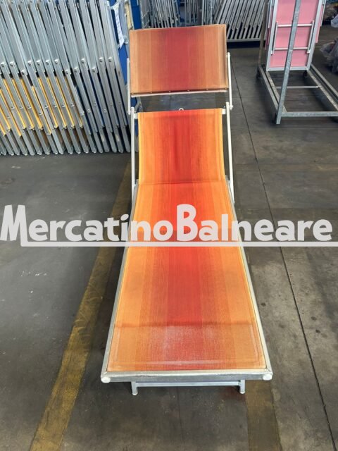 LETTINO ALLUMINIO USATO 601 2 POSIZIONI CON STAFFE TELA SFUMATA ROSSO GIALLO SENZA SCRITTE