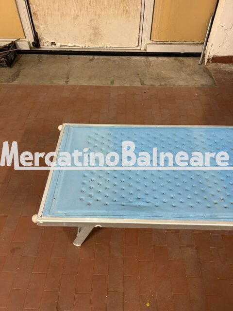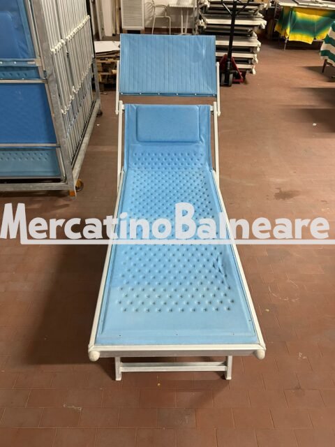 LETTINO ALLUMINIO 501 RELAX SENZA STAFFE  USATO SCHIENALE REGOLABILE  A 3 POSIZIONI  (SOLO DUE LETTINI SONO MODELLO A DUE POSIZIONI) TELAIO PERFETTAMENTE FUNZIONALE RICAMBI SEMPRE DISPONIBILI TELA IN ECO PELLE COLORE AZZURRO  USATA MA ANCORA FUNZIONALE  PREZZO PER CADAUNO LETTINO IVA E TRASPORTO ESCLUSO  Trasporto escluso