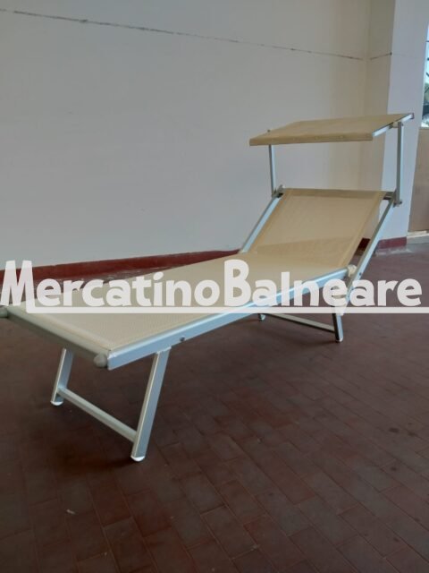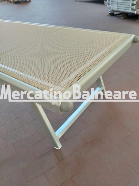 LETTINO ALLUMINIO NUOVO PRONTA CONSEGNA 100% NOSTRA PRODUZIONE RICAMBI SEMPRE DISPONIBILI TELAIO 501 RELAX ALLUMINIO ANODIZZATO SILVER SCHIENALE REGOLABILE A TRE POSIZIONI DI CUI ULTIMA TOTAL FLAT PIATTA 180° TELA TWM 5161 BEIGE CON TETTINO BEIGE ABBINATO CON DISTANZIALI SALVA MANO AD ELIMINARE TUTTI GLI EFFETTO FORBICE CON TETTINO PARASOLE REGOLABILE PREZZO IVA E TRASPORTO ESCLUSO  Escluso trasporto ed eventuali parti inferiori. Vendibili singolarmente