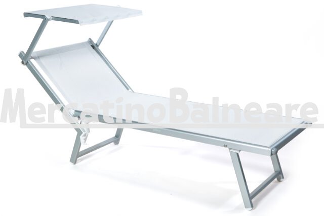 LETTINO ALLUMINIO NUOVO PRONTA CONSEGNA 100% NOSTRA PRODUZIONE RICAMBI SEMPRE DISPONIBILI TELAIO 501 RELAX ALLUMINIO ANODIZZATO SILVER SCHIENALE REGOLABILE A TRE POSIZIONI DI CUI ULTIMA TOTAL FLAT PIATTA 180° TELA TWM 0108 BIANCO CON TETTINO ABBINATO CON DISTANZIALI SALVA MANO AD ELIMINARE TUTTI GLI EFFETTO FORBICE CON TETTINO PARASOLE REGOLABILE PREZZO IVA E TRASPORTO ESCLUSO  Escluso trasporto ed eventuali parti inferiori. Vendibili singolarmente