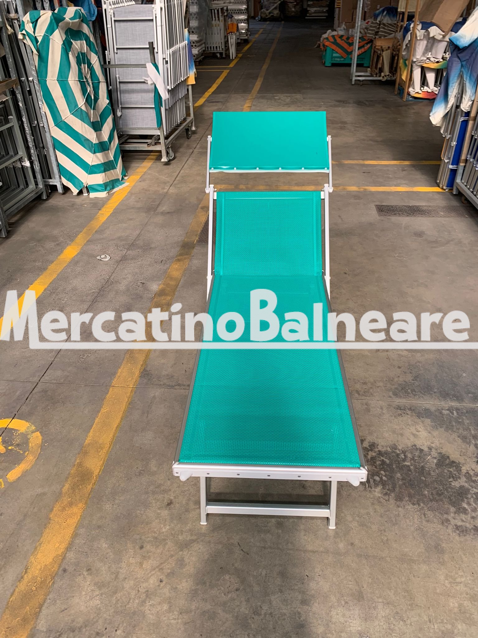 Indietro a LETTINO SEMINUOVO PRONTA CONSEGNA 3 POSIZIONI TELA VERDE TRAFORATA