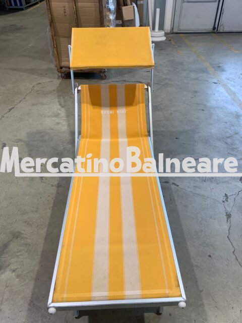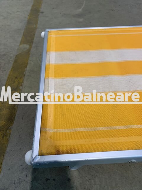 LETTINO USATO 2 POSIZIONI TELA GIALLA CON BANDE BIANCHE CON STAFFE CON SCRITTA