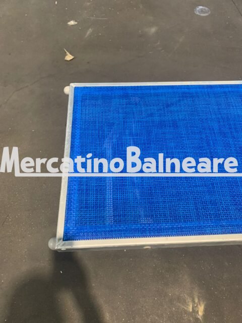 LETTINO USATO PRONTA CONSEGNA RICAMBI SEMPRE DISPONIBILI TELAIO MODELLO MAXI LUNGHEZZA MAGGIORATA 2 POSIZIONI CON STAFFE DISCRETO E PERFETTAMENTE FUNZIONALE TELA TRAFORATA COLORE BLU MELANGE NUOVA  SENZA SCRITTA   SONO ACQUISTABILI ANCHE SINGOLARMENTE IL PREZZO IVA E TRASPORTO ESCLUSO Trasporto escluso