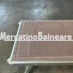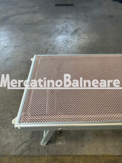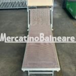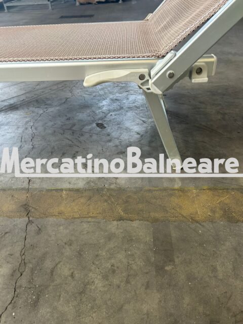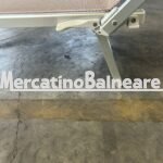 LETTINO ALLUMINIO USATO PRONTA CONSEGNA TELAIO PERFETTAMENTE FUNZIONALE  MODELLO CON LEVE QUINDI SENZA CORDELLA  E SENZA STAFFE ALLE GAMBE TELA TWM ECRU CON FILO ROSSO BORDEAUX DISCRETA E PERFETTAMENTE FUNZIONALE TETTINO PARASOLE CON LOGO BAGNO PARADISO 25  ECRU  MACCHIATO MA PERFETTAMENTE FUNZIONANTE IL PREZZO DEL SINGOLO LETTINO E’ CALCOLATO PER LA VENDITA DI TUTTA LA PARTITA INTERA  IVA E TRASPORTO ESCLUSO PER FORNITURE PARZIALI CI RISERVIAMO DI RIVALUTARE OFFERTA  Trasporto escluso