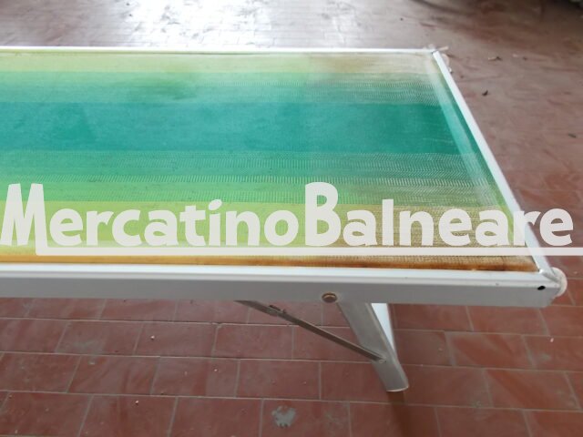 LETTINO ALLUMINIO USATO MODELLO 601 DI NOSTRA PRODUZIONE RICAMBI SEMPRE DISPONIBILI  TELAIO MOLTO USATO MA FUNZIONALE E BELLO TELA MOLTO USATA CON MACCHIE DI RUGGIONE LATO PIEDE SIA A DESTRA CHE A SINISTRA MA ANCORA PERFETTAMENTE FUNZIONALE CON SCRITTA LIDO VIRGILIO Trasporto escluso