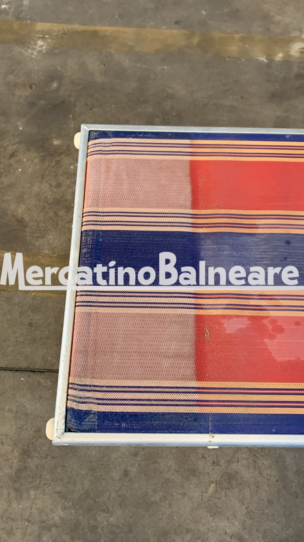 Indietro a LETTINO USATO TELA ROSSO BLU CON STAFFE CON SCRITTA