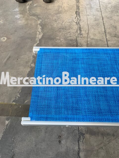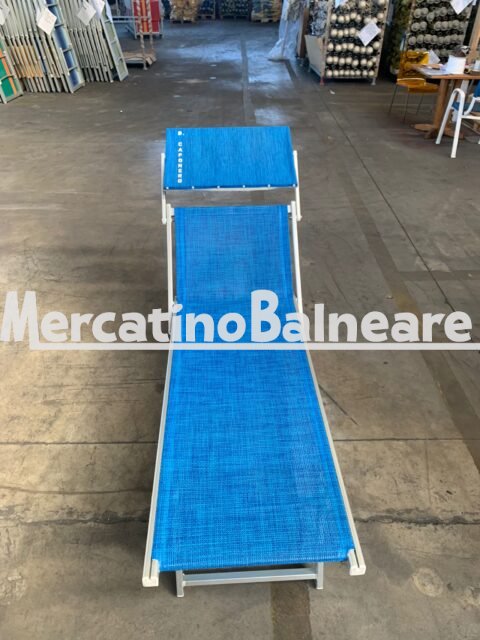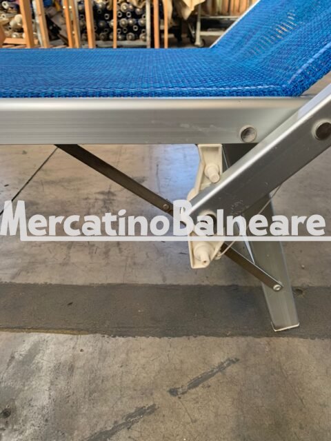 LETTINO USATO PRONTA CONSEGNA RICAMBI SEMPRE DISPONIBILI TELAIO 2 POSIZIONI CON STAFFE DISCRETO E PERFETTAMENTE FUNZIONALE TELA TRAFORATA COLORE BLU MELANGE IN BUONE CONDIZIONI E CON SCRITTA “C. CAPONERO” SU PARASOLE  SONO ACQUISTABILI ANCHE SINGOLARMENTE IL PREZZO IVA E TRASPORTO ESCLUSO Trasporto escluso