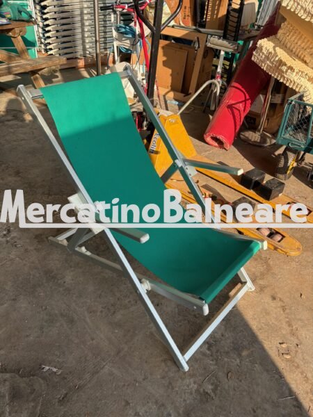 Vendo 300 lettini con telo verde o blu e 30 sdraio in alluminio di produzione nazionale usati ma in ottimo stato, senza compassi e senza scritte.