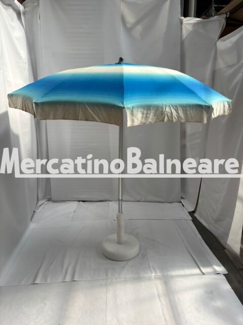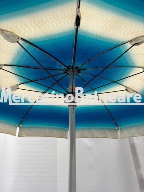 MIRO USATO PRONTA CONSEGNA RAVENNA  10 STECCHE LUNGHEZZA CM 100 PER UN DIAMETRO DI CIRCA 2 METRI   PALO ALLUMINIO ANODIZZATO INNESTO 40  CON APPENDIABITI  FISSAGIO DELLA TELA ALLE STECCHE CON VITE ANTISTRAPPO TESSUTO ACRIL MARE SFUMATO  BLU E BIANCO MOLTO USATI MA FUNZIONALI  PREZZO PER CADAUNO OMBRELLONE ESCLUSO LA PARTE INFERIORE  ESCLUSO TRASPORTO E IVA NOTA PREFERIAMO LA VENDITA DI TUTTA LA PARTITA UNICA PER RICHIESTE PARZIALI CI RISERVIAMO DI VALUTARLE Vendibili singolarmente Prezzo franco fabbrica escluso della parte inferiore