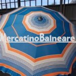 OMBRELLONE  USATO PRONTA CONSEGNA DI NOSTRA PRODUZIONE RICAMBI SEMPRE DISPONIBILI STRUTTURA RAGNO CON LE STECCHE MOLTO OSSIDATE MA FUNZIONALI  CON APPENDIABITI  PALO IN ALLUMINIO 40 CON FERMO TRAMONTATA TESSUTO USATO RASATO CELESTE BIANCO CON RIGHINE ARANCIO PARTE INFERIORE DA DEFINIRE  Vendibili singolarmente Prezzo franco fabbrica escluso della parte inferiore
