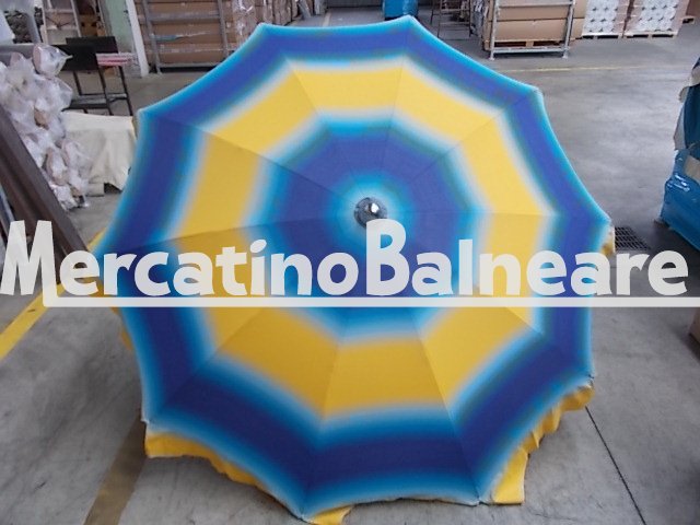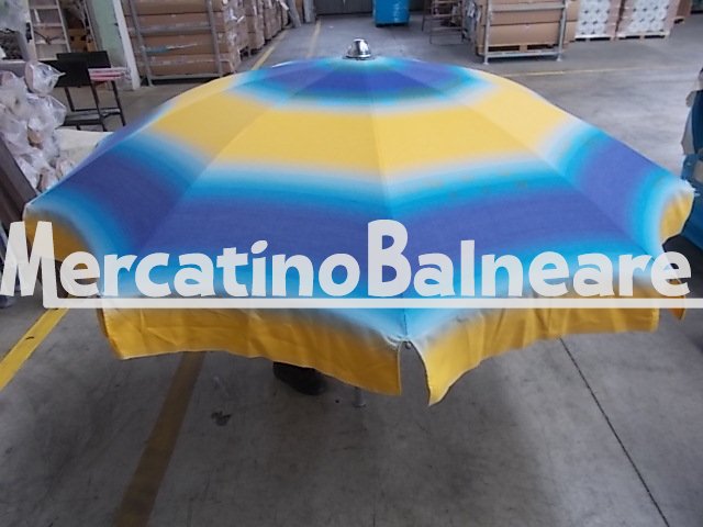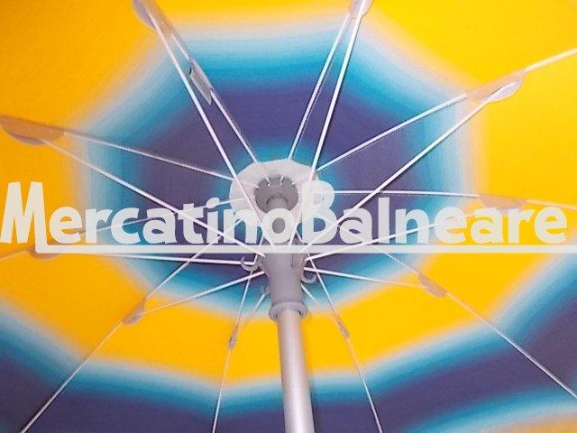 MIRO NUOVO PRONTA CONSEGNA 100% NOSTRA PRODUZIONE RICAMBI SEMPRE DISPONIBILI STRUTTURA DIAMANTE SALVA MANO 10 STECCHE DA CM. 100 PER UN DIAMETRO DI METRI 2 POMOLO INOX PALO IN ALLUMINIO CON SISTEMA ANTIVENTO BAIONETTA TESSUTO TEMPOTEST SFUMATO BLU GIALLO PREZZO IVA ESCLUSA PARTE INFERIORE ESCLUSA Escluso trasporto ed eventuali parti inferiori. Vendibili singolarmente