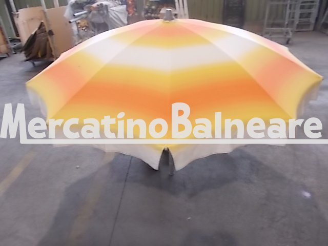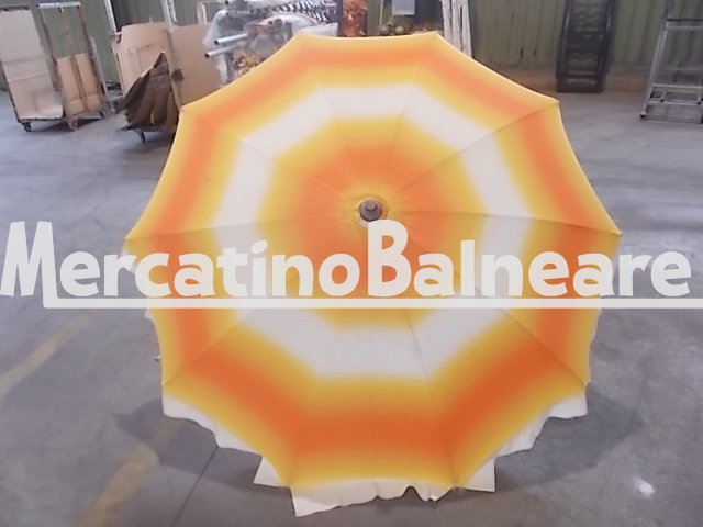 MIRO USATO IN PRONTA CONSEGNA RICAMBI SEMPRE DISPONIBILI STRUTTURA RAGNO A 10 STECCHE DA CM 100 PER UN DIAMETRO DI CIRCA 2 METRI STECCHE OSSIDATE MA FUNZIONALI CON APPENDIABITI  PALO IN ALLUMINIO ANODIZZATO ESTERNO Ø 40 mm INNESTO Ø 40 mm TESSUTO ACRILMARE SFUMATO BIANCO ARANCIO MANDARINO  STATO DISCRETO   PREZZO PER CADAUNO OMBRELLONE ESCLUSO DELLA PARTE INFERIORE DA DEFINIRE ED ESCLUSO I COSTI DI TRASPORTO  Vendibili singolarmente Prezzo franco fabbrica escluso della parte inferiore
