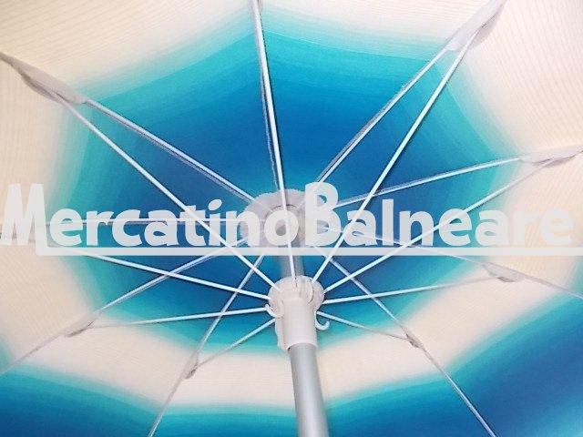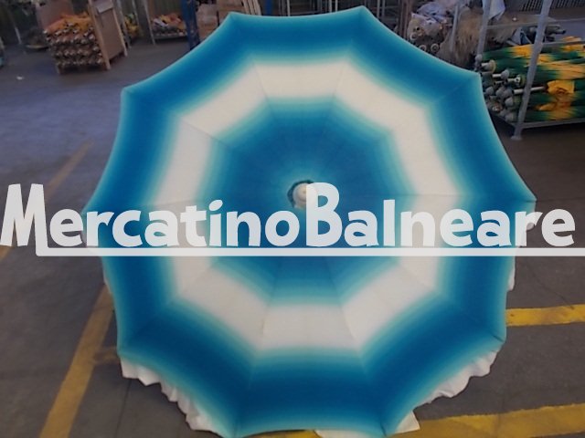 MIRO USATO IN PRONTA CONSEGNA RICAMBI SEMPRE DISPONIBILI STRUTTURA MODELLO RICCIONE CON PULSANTE   10 STECCHE   DA CM 100 PER UN DIAMETRO DI METRI 2 CON APPENDIABITI STECCHE  PERFETTAMENTE FUNZIONALI  PALO IN ALLUMINIO 40 TESSUTO ACRILMARE SFUMATO BLU BIANCO COLORE MOLTO BELLO FISSAGGIO CON TASCHINA PRIMA CUCITURA ESTERNA INDEBOLITA LA SECONDA INTERNA OTTIMA     PREZZO IVA ESCLUSA E PARTE INFERIORE ESCLUSA  Vendibili singolarmente Prezzo franco fabbrica escluso della parte inferiore