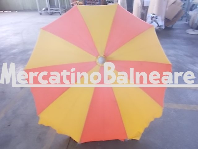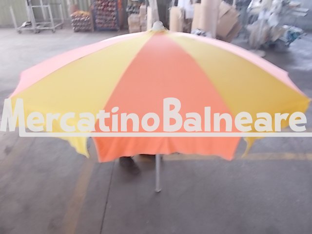 MIRO USATO IN PRONTA CONSEGNA RICAMBI SEMPRE DISPONIBILI STRUTTURA MODELLO RICCIONE CON APPENDIABITI  10 STECCHE   DA CM 100 PER UN DIAMETRO DI METRI 2 STECCHE  PERFETTAMENTE FUNZIONALI  PALO IN ALLUMINIO 38 TESSUTO TEMPOTEST A SPICCHI ALTERNATI ARAGOSTA E GIALLO       PREZZO IVA ESCLUSA E PARTE INFERIORE ESCLUSA  Vendibili singolarmente Prezzo franco fabbrica escluso della parte inferiore