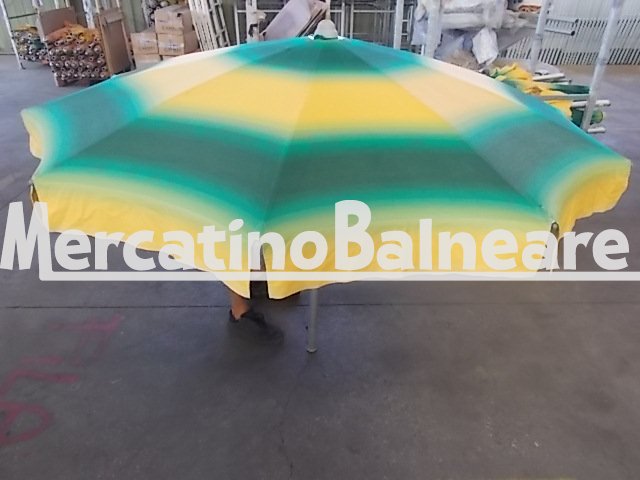 MIRO USATO IN PRONTA CONSEGNA RICAMBI SEMPRE DISPONIBILI STRUTTURA MODELLO SG CON APPENDIABITI RAGNO PVC   10 STECCHE   DA CM 100 PER UN DIAMETRO DI METRI 2 7 OMBRELLONI INVECE STECCA DA  110 CM PER UN DIAMETRO DI METRI 2,2 STECCHE CON OSSIDO MA  PERFETTAMENTE FUNZIONALI  PALO IN ALLUMINIO  38 TESSUTO TEMPOTEST SFUMATO VERDE GIALLO COLORI MOLTO BELLI      PREZZO IVA ESCLUSA E PARTE INFERIORE ESCLUSA  Vendibili singolarmente Prezzo franco fabbrica escluso della parte inferiore