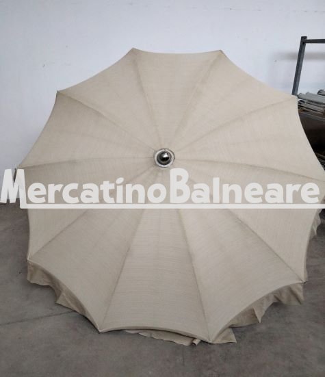 OMBRELLONE CLASSICO CON PANTA N. 10 STECCHE DA CM. 100 IN BUONE CONDIZIONI. PALO SUPERIORE IN  ALLUMINIO DIAM. 40. COPERTURA COL. MELANGE ECRU IN BUONE CONDIZIONI. Il prezzo s’intende per l’acquisto dell’intera partita. I.V.A. esclusa. Per l’acquisto di singole unità, richiedere preventivo. Vendibili singolarmente Prezzo franco fabbrica escluso della parte inferiore