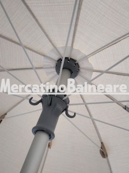 OMBRELLONE NUOVO PRONTA CONSEGNA OMBRELLONE CLASSICO MOD. MIRO CON PANTA CON N. 10 STECCHE DA CM 100. PALO SUPERIORE IN ALLUMINIO INNESTO SCIROCCO DIAM.40. SISTEMA DI APERTURA/CHIUSURA ANTIFONRTUNISTICO DIAMANTE, CHE PERMETTE L’APERTURA/CHIUSURA DELL’OMBRELLONE SENZA INTERAGIRE SU PULSANTI E/O MOLLE. COPERTURA IN TESSUTO TEMPOTEST PARA’ DISEGNO 550/52, ETNICO ECRU’ Escluso trasporto ed eventuali parti inferiori. Vendibili singolarmente