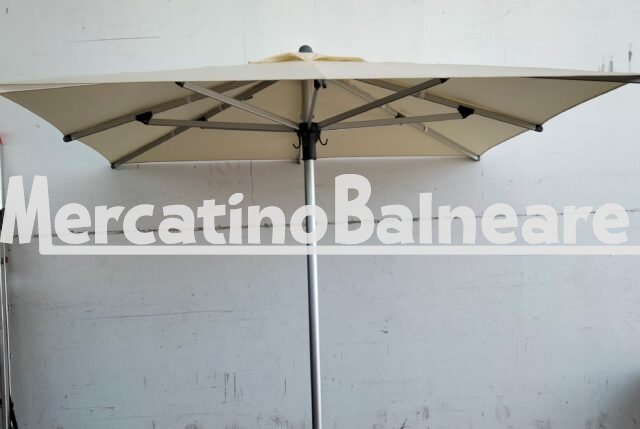 OMBRELLONE NUOVO PRONTA CONSEGNA. MOD. PICASSO 200X200  PALO ANODIZZATO IN ALLUMINIO PALO UNICO 250 H. TESSUTO TEMPOTEST 93/15 ECRU/PANNA CON BORDINO ECRU, SOFFIETTO COL.93/15 ECRU RIFINITO BORDINO 93 ECRU. BASE ESCLUSA. Escluso trasporto ed eventuali parti inferiori. Vendibili singolarmente