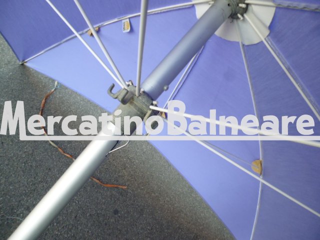 Ombrelloni con fusti tutti uguali da 175×175 a 8 stecche usati ma è stata montata una copertura nuova  Gli ombrelloni sono: – 3 neri  – 2 celestino  Vendibili singolarmente Prezzo franco fabbrica escluso della parte inferiore