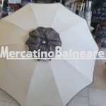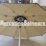 Ombrelloni alluminio nuovi diamante 100/10 senza panta, palo 140 baionetta tessuto unito ecrù senza panta con passamaneria marrone, + soffietto marrone con passamaneria ecrù Escluso trasporto ed eventuali parti inferiori. Vendibili singolarmente