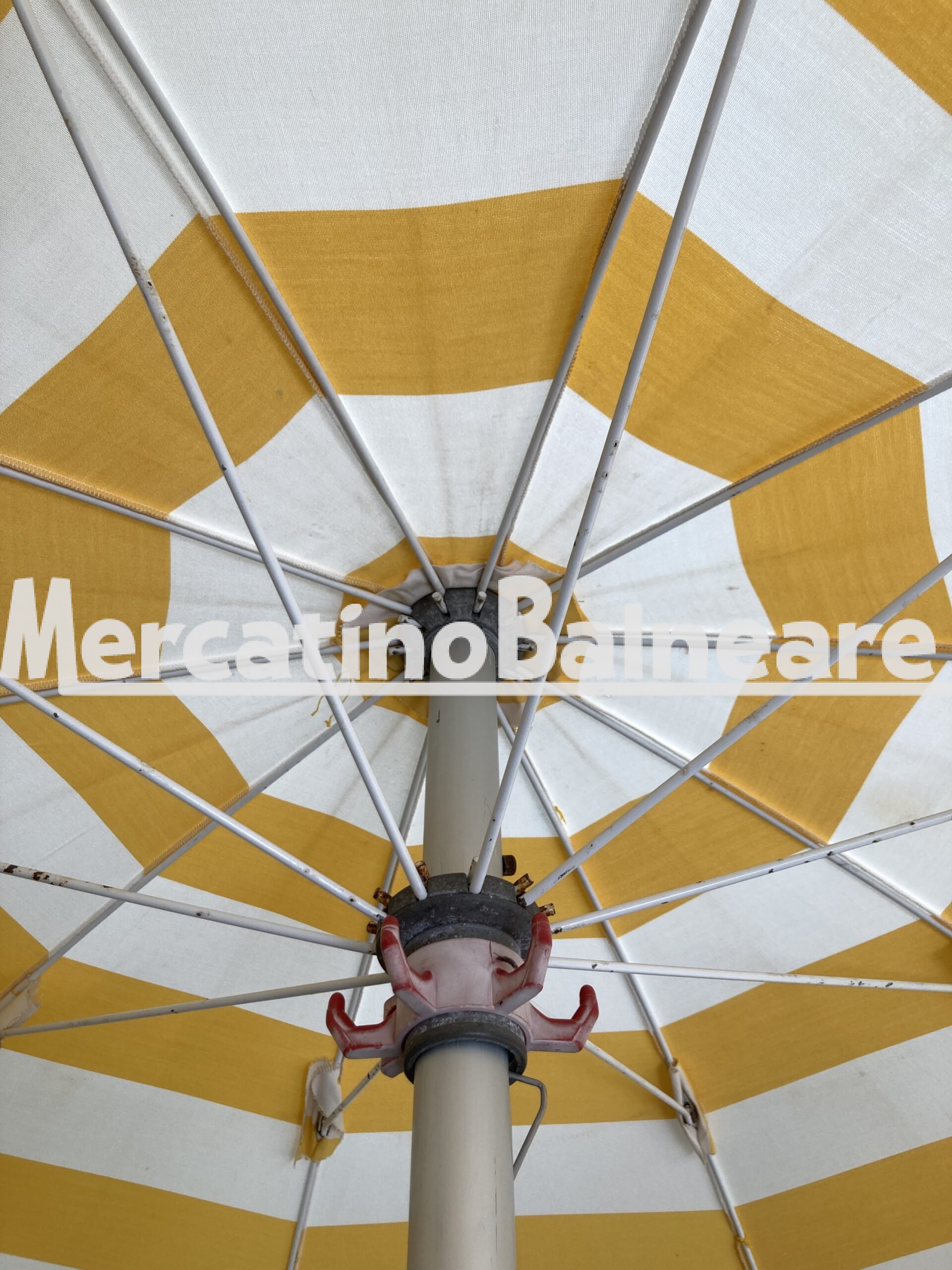 Indietro a Ombrelloni professionali per spiaggia in alluminio A RIGHE GIALLO/BIANCO IN BUONE CONDIZIONI