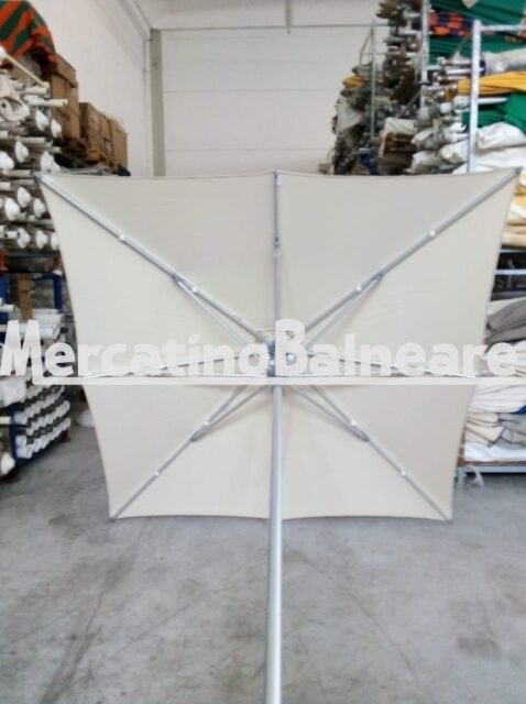 OMBRELLONI ALLUMINIO MODELLO PICASSO 2X2 SEMI NUOVI PALO UNICO DA 3 MT TESSUTO SENZA PANTA ECRU’ CON SOFFIETTO IN TINTA Vendibili singolarmente Prezzo franco fabbrica escluso della parte inferiore