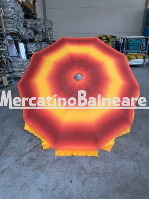 Reclama "Ombrelloni professionali per spiaggia in alluminio SFUMATI ROSSI/GIALLI"