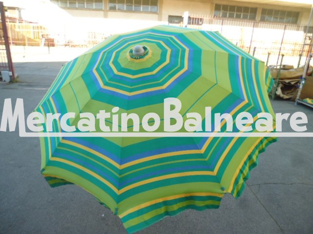ATTENZIONE 80 DI QUESTI OMBRELLONI TORNERANNO DISPONIBILI DAL 20 MAGGIO CIRCA. Ombrellone in condizioni sufficienti sia per il fusto che per la tela. Fissaggio della punta con la borchia. Appendiabiti compreso nel collano in PVC Vendibili singolarmente Prezzo franco fabbrica escluso della parte inferiore