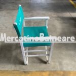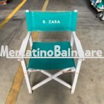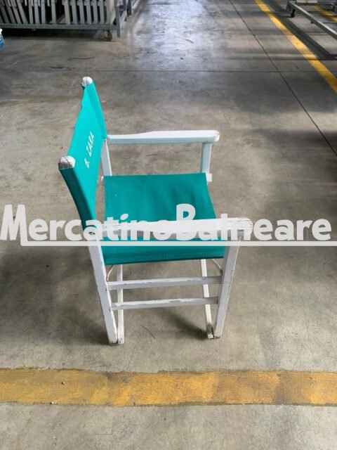 Reclama "POLTRONCINE REGISTA IN LEGNO BIANCO CON TELA VERDE CON SCRITTA"