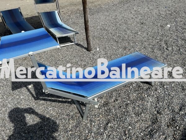 Vendo per rinnovo locale, attrezzatura da stabilimento balneare come da foto ( 72 ombrelloni in alluminio con tavolino, 144 lettini in alluminio , 8 sdraio in alluminio ) .